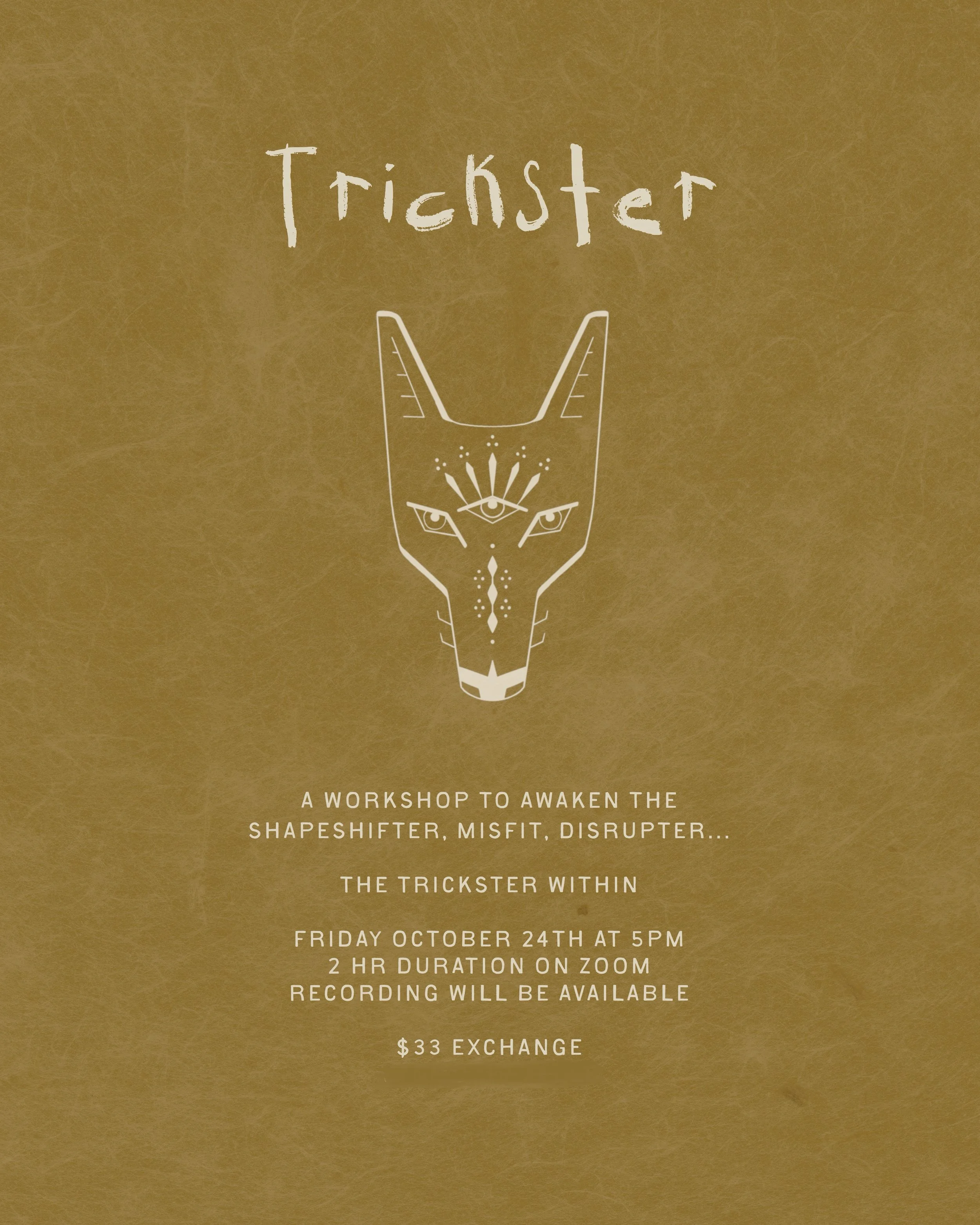 All Trickster Workshop $33.00 Illustrated Stickers $5.00 Sold out “Artemis” 8x10” Print $32.00 Sold out “Grandmother” 10x10” Print $42.00 “Prayer Weaver” 8x10” Print $32.00 “Shapeshifter” 8x10” Print $32.00 “High Priestess” Tarot Print 8x10” $32.00 Sold out “The Sun” Tarot Print 8x10” $32.00 Sold out “Death” Tarot Print 8x10” $32.00 Sold out Power Animal Retreat Oct 2025 $888.00
